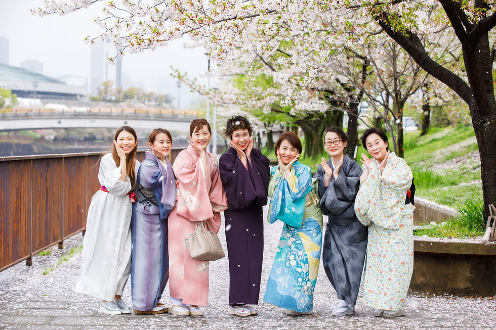 今回集まったメンバーは、年齢も職業もバラバラですが、共通しているのは「着物が好き」ということ。その一つだけで、初対面でも一瞬で距離が縮まり、笑顔が溢れて撮影している仲間に「ステキ!」「かわいい~」と褒め言葉が飛び交う温かいロケーション撮影でした。